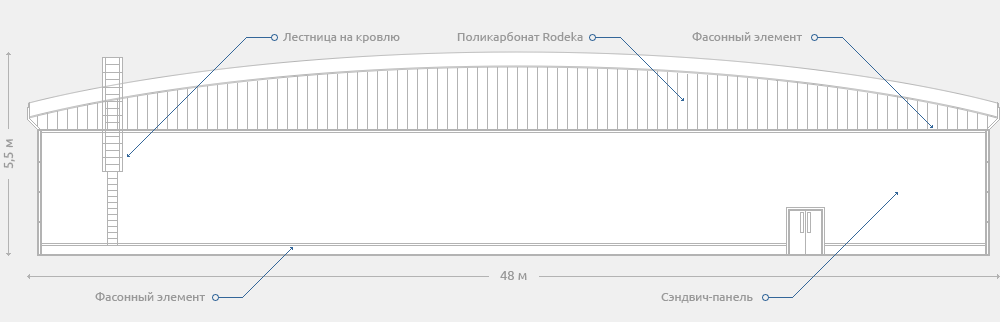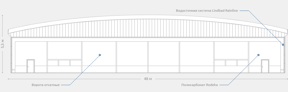 - Внутреннее помещение ангаров имеет следующие размеры - длинна 48 метров, высота (по кромке ворот) - 5,5 метров, глубина - 18 метров.